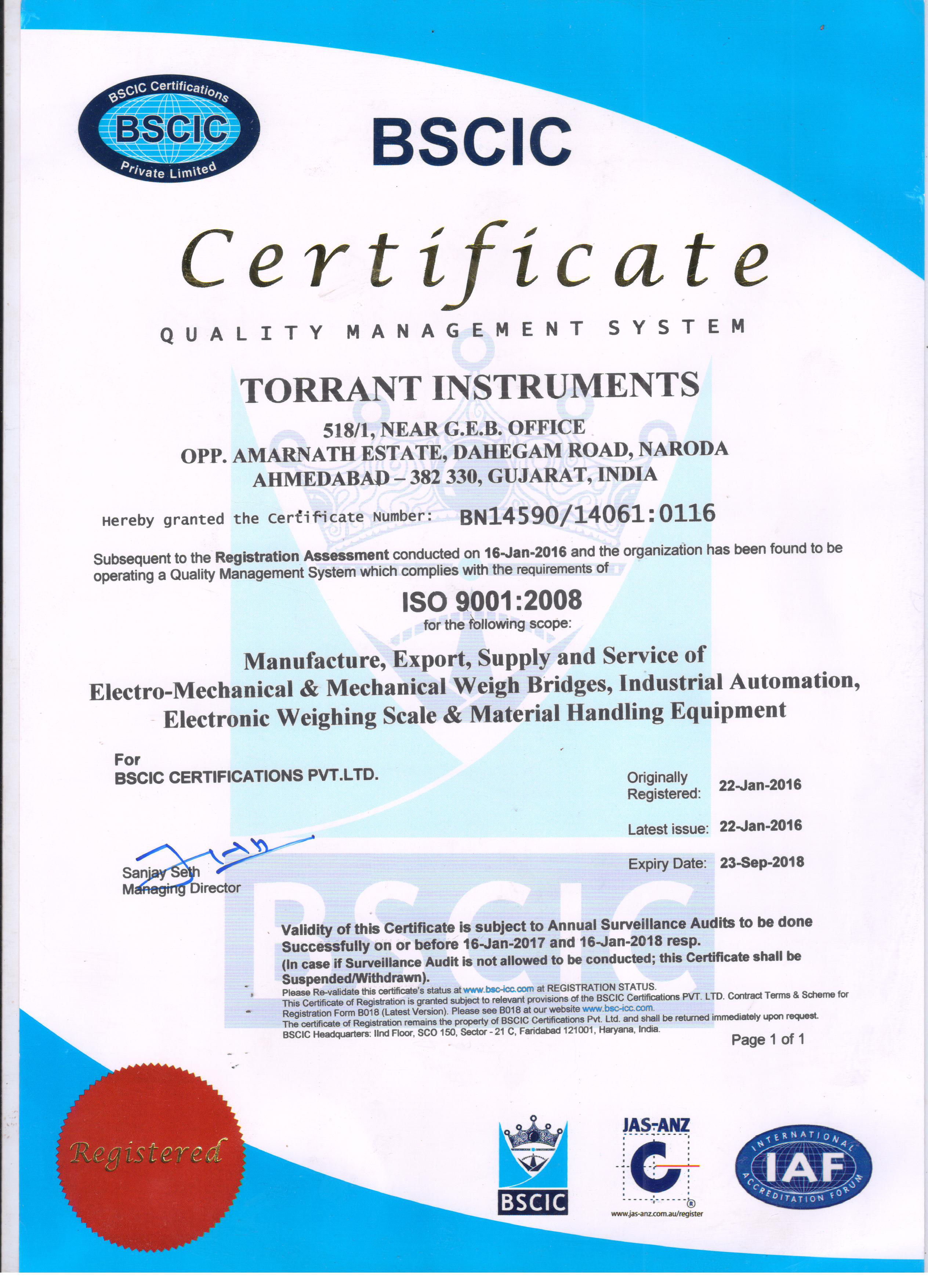 Established in the year, 2005, at Ahmedabad, Gujarat, India, we “Torrant Instruments” are one of the leading manufacturers of a wide range of Electronic, Mechanical, Electro – Mechanical Weigh Bridges & Weighing Scales. Our range of product includes Weighing Pad Systems, Mechanical Weighbridge, Table Top Scale, Platform Scale, Bag Filling, Pit Type, Pit Less Weighbridges, Axel and Batching System.
